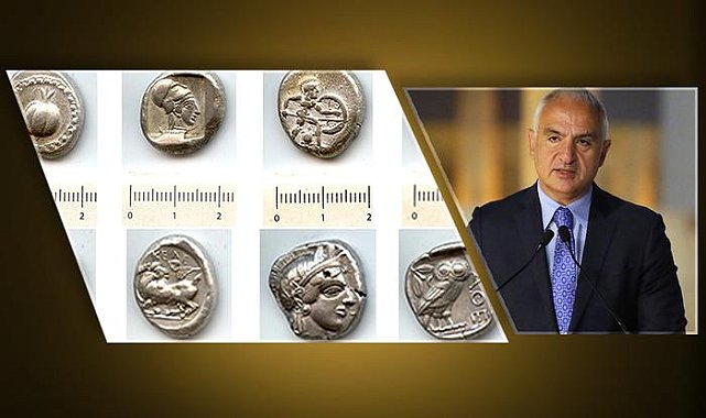 Ardından Bakan Ersoy, Atina Nümizmatik Müzesi'ne geçerek burada Yunanistan Kültür Bakanı Lina Mendoni ile bir araya geldi.Burada Yunanistan'ın Kipi Sınır Kapısı'nda Yunan makamlarınca şüphe üzerine yapılan bir aramada bulunan ve Türkiye'ye ait olduğu tespit edilen M.Ö. 7'nci yüzyıldan M.Ö. 5'inci yüzyıla kadar süren tarih aralığında basılmış 1055 sikkenin teslimi için tören düzenlendi. Ersoy, buradaki konuşmasında, "Bu gümüş sikke grubu, tarihte ilk madeni parayı basan Anadolu uygarlığı Lidyalılara ait olan; ayrıca Tarsus, Side, Aspendos ve Soli-Pompeiopolis gibi şehirlerde basılan örnekleri içeriyor ve şimdi bu güzel işbirliği sayesinde ait oldukları topraklara dönüyorlar." dedi.Bakan Ersoy, Türkiye ve Yunanistan'ın 2013'te "Kültür Varlığının Yasadışı İthali ve İhracının, Transitinin ve Mülkiyet Transferinin Yasaklanması ve Önlenmesine İlişkin" ikili anlaşma imzaladığını hatırlatarak, "Bugün iadesi gerçekleştirilen sikkeler vesilesiyle bu işbirliğinin sonuç verdiğini görmek çok değerlidir ve ülkelerimiz adına ciddi bir kazanımdır. Bunu korumak ve güçlendirmek adına Yunanistan ile daha yakın işbirliği mekanizmaları ve kurumlar arası iletişim kanalları oluşturmak için çalışmaya devam edeceğiz." diye konuştu.Yunanistan'ın Türkiye'ye teslim ettiği 1055 sikkenin, uzmanlar tarafından yapılan inceleme sonucu Anadolu kökenli olduğunun belirlendiğini dile getiren Ersoy, bu bilgiler ışığında Türkiye'nin iade talebinde bulunduğunu belirtti.Ersoy, UNESCO Sözleşmesi hükümleri ve iki ülke arasındaki ikili anlaşma çerçevesinde yürütülen adli sürecin tamamlanmasıyla sikkelerin Türkiye'ye iade edilmesine karar verildiğini anlattı."BU GÜÇLÜ İŞBİRLİĞİYLE ÇOK ÖNEMLİ BİR EŞİĞİ GEÇTİĞİMİZİ DÜŞÜNÜYORUM"